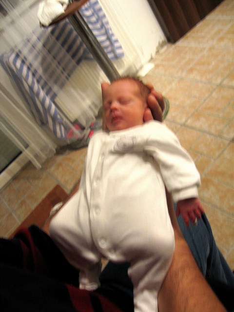 Anyája a kezébe kapta tegnap és úgy etette - "Anya, leszakadt a kezem és folyt rólam a víz", - sajnos még cumisüvegből, de hátha megengedik ma már a szoptatást is. Nemsokára az infu-nak is vége és remélem mehet az "oviba"
